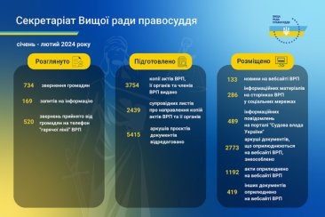 Упродовж двох місяців 2024 року на офіційному вебсайті Вищої ради правосуддя оприлюднено 1192 акти ВРП, 419 інших документів, 133 новини; у соціальних мережах ВРП розміщено близько 300 інформаційних матеріалів.